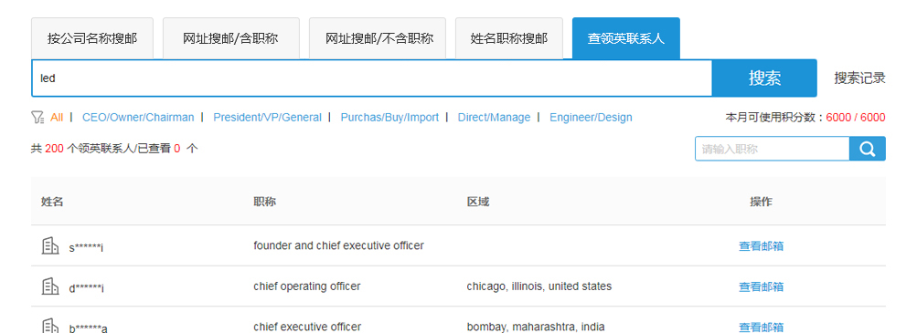 精准匹配搜索网络,一键搜索Google, Linkedin, Twitter等主流社媒的潜在客户信息